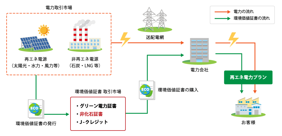 電助では法人様に再生可能エネルギー由来の電気をご案内するにあたり、再エネ電力に適応する「非化石証書」を取り扱うENECHANGE社との協力をすすめております。